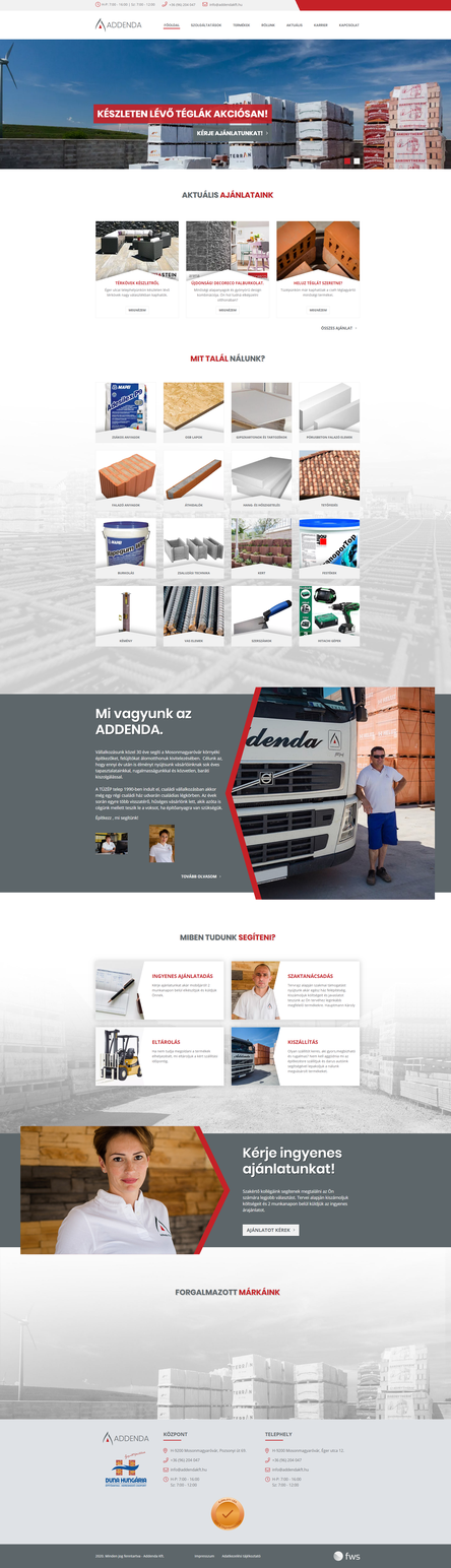 A mosonmagyaróvári Addenda Kft. már közel 30 éve áll a környékbeli építkezők, felújítók szolgálatában. A folyamatosan növekvő tüzép telep híres vásárló központú szolgáltatásairól és a forgalmazott termékek minőségéről.