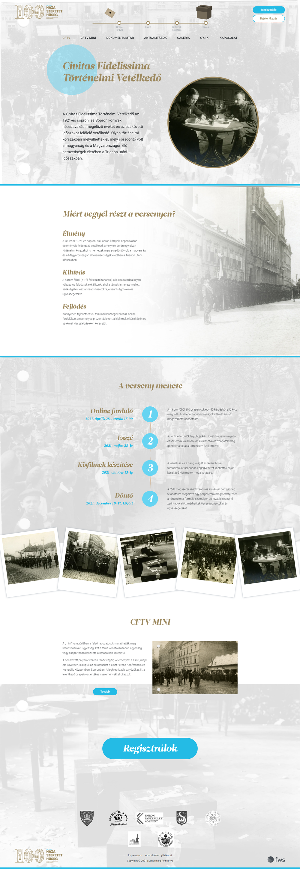 A soproni tankerületet már évek óta ügyfelünknek mondhatjuk, hiszen korábban a Páneurópai Piknikkel kapcsos vetélkedő weboldalát készítettük el számukra. Nagy örömmel töltött el bennünket, hogy újra minket bíznak meg a munkával, és a korábbi honlap mintájára nekiláttunk a Civitas Fidelissima Történelmi Vetélkedő egyedi fejlesztésű honlapjának.