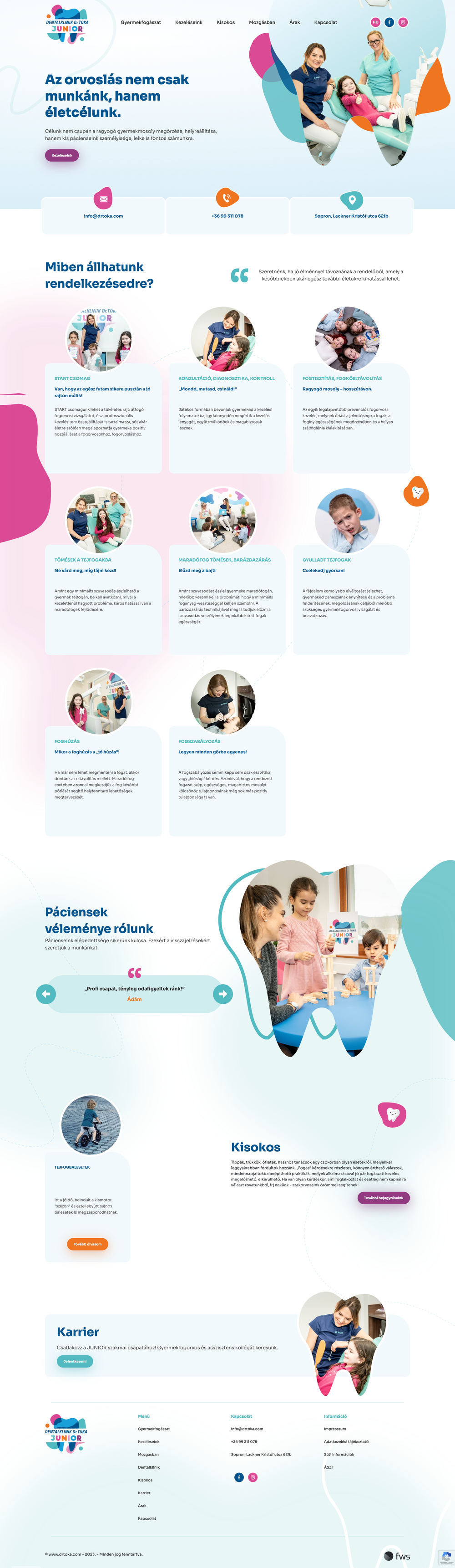 Az együttműködés a Dentalklinik Dr. Tóka Junior csapatával rendkívül inspiráló volt. Elköteleződésük a legkisebb páciensek iránt minden pillanatban érezhető volt, és ez egyértelműen átszőtte a weboldal teljes koncepcióját és tartalmát. Úgy véljük, hogy az elkészült weboldal méltón képviseli szakértelmüket és magas színvonalukat, valamint közvetíti a klinika legfontosabb elvét, a félelem és könnyek nélküli fogorvoslást is.
