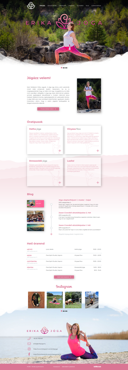 Az egyedi grafikai kialakítás a jóga hangulatát megfelelően tükrözi, a tartalmi elemek pedig tetszés szerint személyreszabhatók, így biztosítva az oldal könnyű kezelhetőségét.