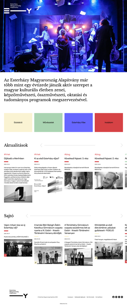Külön büszkeség számunkra, hogy a 2025-ben átadásra kerülő Esterházy Irodalmi Díj hivatalos honlapja is közös munkánk eredménye. A díjhoz kapcsolódó oldal célja, hogy méltó digitális platformot biztosítson Magyarország egyik legjelentősebb irodalmi elismerésének, amely Esterházy Péter szellemi örökségét ápolja és továbbviszi.