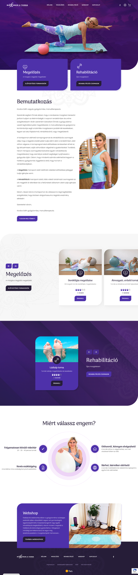 Az elkészült oldal modern és felhasználóbarát és a hozzá kapcsolódó online videós platformon az érdeklődők különböző egészségmegőrző és rehabilitációs tornacsomagok közül választhatnak. A tornaprogramokat előfizetéses rendszerben lehet igénybe venni, az egyszerűbb tájékozódás és célzott segítség érdekében kategóriákba sorolva – például megelőzés vagy rehabilitáció mozgásprogramok formájában.