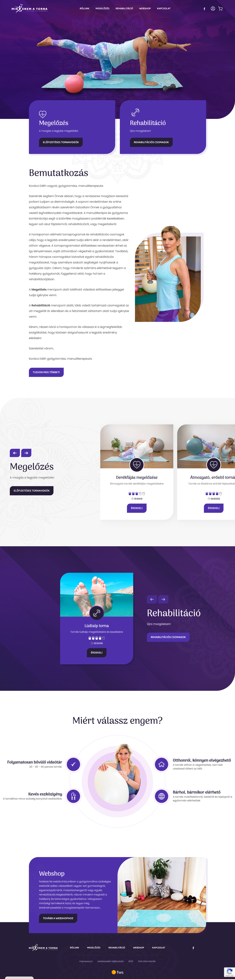 A mindenematorna.hu oldal megálmodója Kovács Edith gyógytornász és manuálterapeuta. Célja, hogy hatékony, mégis elérhető megoldásokat kínáljon mozgásszervi problémák kezelésére – akár személyesen, akár otthoni környezetben. A soproni rendelőjében végzett munkája mellett Edith régóta kereste azt a digitális lehetőséget, amellyel az otthon végezhető gyógytorna gyakorlatokat strukturáltan, szakmai alapossággal és egyszerű használattal teheti elérhetővé az érdeklődők számára.