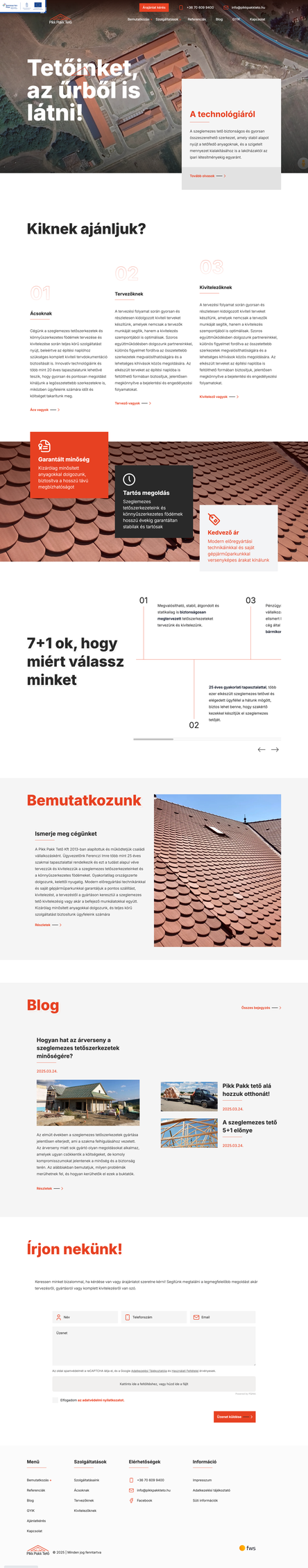 A végeredmény egy modern, letisztult, technológiailag naprakész és reszponzív weboldal lett, amely hitelesen képviseli a Pikk Pakk Tető szakértelmét és filozófiáját. A folyamat során kiemelt szempont volt, hogy a tartalom és a vizuális megjelenés szorosan együtt dolgozzon, így az oldal nemcsak informatív, de bizalmat is ébreszt – pontosan úgy, ahogy a megrendelőik elvárják tőlük.