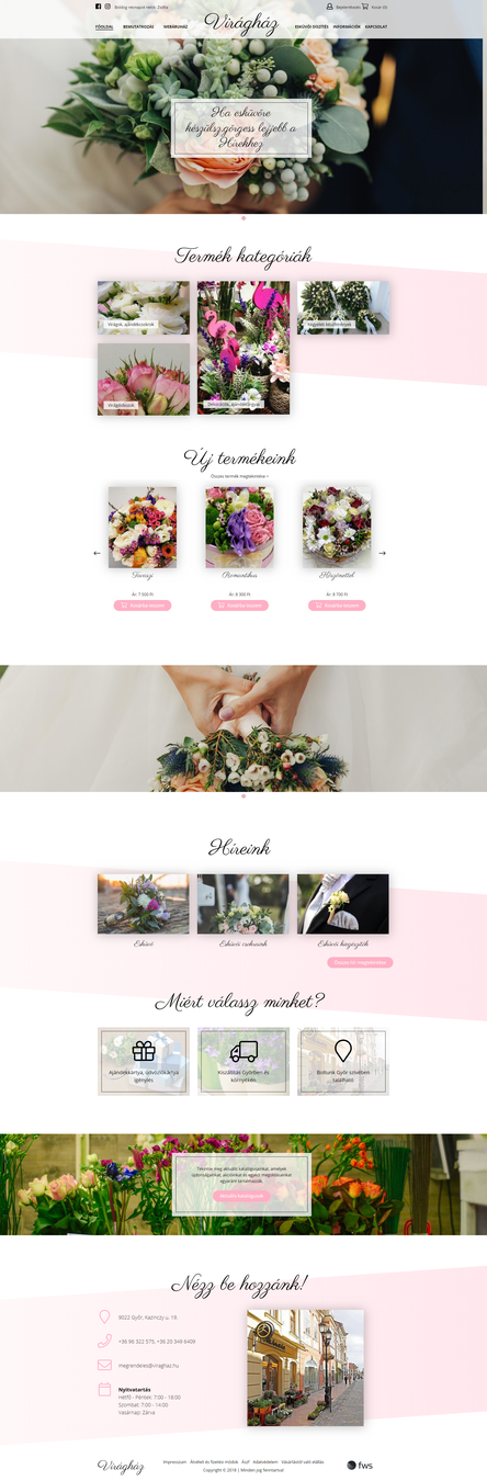A Virágház Győr belvárosában 1999 óta foglalkozik virágkötészettel, azon belül is egyedi, kreatív munkák elkészítésével minőségi vágott virágok felhasználásával. Az igényes és minőségi hangulatot az újonnan elkészített weboldal is tükrözi. A közös munka során teljes adminisztrációs felületet adtunk át partnerünknek, amelynek segítségével a termékeket a webshopba érkező rendeléseket, értesítéseket és tartalmi elemeket egyaránt kezelheti webfejlesztői segítség nélkül. A vásárlók biztonságáról a már elvárásnak számító biztonságos SSL kapcsolat gondoskodik a kártyás fizetés során.